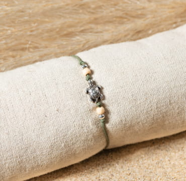 Découvrez le bracelet pour enfant Dad, aussi disponible pour les hommes formant ainsi un duo parfait entre petits et grands. Ce bracelet est composé d’un cordon réglable vert, de petites perles en bois ainsi qu'un pendentif en forme de tortue : un duo de bijoux pour de véritables aventuriers.