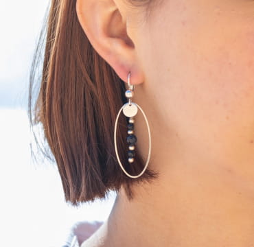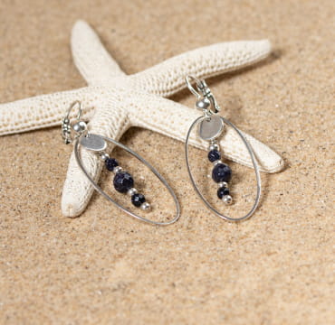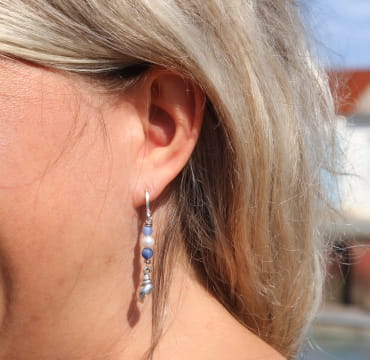 Des boucles d’oreilles bleu marine, en perles naturelles