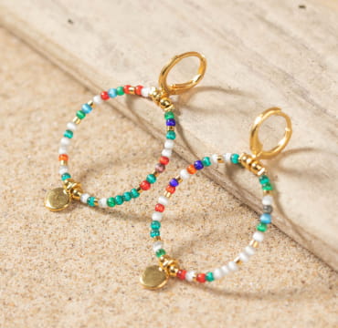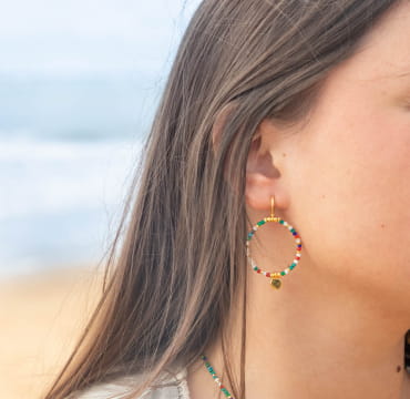 Notre bijou Minerve, de jolies boucles d’oreilles multicolores en perles sont parfaite pour illuminer votre visage et apporter des couleurs chaleureuses à votre tenue. Découvrez aussi notre collier et notre bracelet Minerve composés de perles multicolores ou blanches.