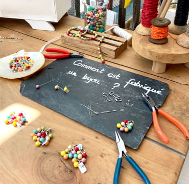 Dans chacune de nos boutiques, un espace atelier est dédié à la fabrication de nos bijoux. Nos vendeuses, formées à plusieurs techniques de montage, composent sur place certaines créations. Ainsi, bracelets, colliers, boucles d'oreilles ou encore porte-clefs prennent forme sous vos yeux.