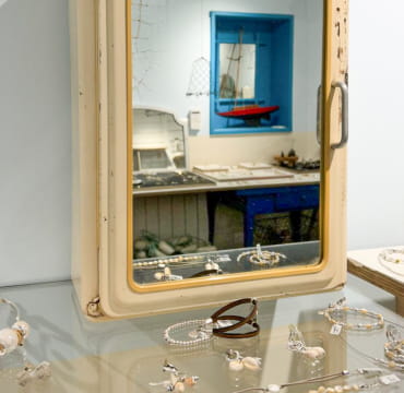L’esprit de nos boutiques se veut chaleureux, simple, accueillant, un petit air marin y souffle. On entendrait presque la mer… Une très grande variété de bijoux vous attend, soigneusement exposés sur nos tables chinées, joliment mis en valeur par nos vendeuses, dans un cadre aux évocations de bord de mer.