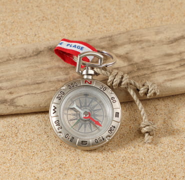 Chaque amoureux de la mer possède sa boussole avant chaque voyage. Vous n’en avez pas ? Ne perdez plus le nord car notre porte-clés Boussole est fait pour vous !
