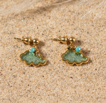 Faites plaisir à votre petite-fille avec ces boucles d’oreilles Mochi en forme de nuage. Disponibles en bleu ciel, turquoise et rose, ces boucles sont fabriquées avec un pendentif en émaille colorée et des petites perles en verre et en hématite doré.