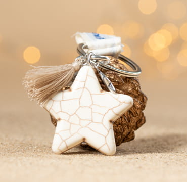 Nos inspirations sont aussi des clins d’œil à l’enfance ou à des symboles appréciés, tel que le porte-clés métal VOILE représentant un bateau en papier. D’autres souvenirs peuvent émerger grâce à nos porte-clés fantaisie tel que le SABLE, véritable bijou fait de pierre en howlite, ou encore VIE, symbolisant l’arbre de vie très populaire auprès des familles.