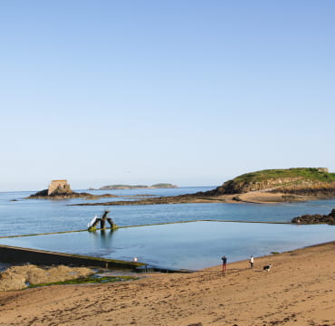 Proche des remparts, la plage du bon Secours se distingue par sa grande piscine naturelle d’eau de mer. Accessible à marée haute et basse, vous pourrez profiter du plongeoir, une touche ludique pour les plus aventuriers d’entre vous.