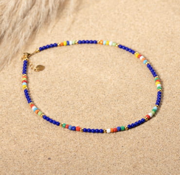 Pour un style plus coloré, craquez pour l’une de nos dernières nouveautés, notre collier ras de cou pour femme Hardy. Ses petites perles en rocaille multicolores et ses perles en verre bleu se combinent harmonieusement pour accessoiriser vos tenues estivales. Pour une parure complète, retrouvez aussi le bracelet Hardy composé de ces mêmes petites perles colorées.
