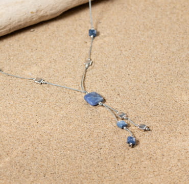 Aigrette, un sautoir femme en lin, sodalite et dumortiérite se distingue par ses perles bleues et leur forme carré. Laissez-vous tenter par la douceur du lin et les belles couleurs vous rappelant l’océan qui nous entoure.