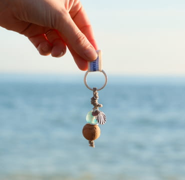 Composé d’une perle bleue translucide de verre recyclé, d’un cordon de lin, d’une perle en liège et d'un pendentif en forme de coquillage argenté, ce porte-clé évoque l’horizon à perte de vue, entre ciel et océan. En achetant cette création spécialement pensée pour la Fondation de la mer, vous soutenez les actions de sensibilisation, de recherche et d'innovation pour la préservation des océans.