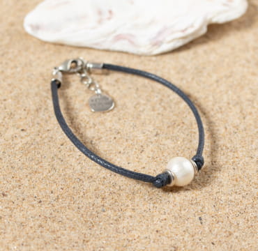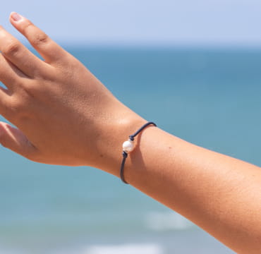 Fabriqué à la main sur un cordon en coton bleu, le bracelet Aix met en lumière sa jolie perle de rivière blanche ! Un bijou délicat et sobre pour rappeler l'océan et ses nuances de couleurs.