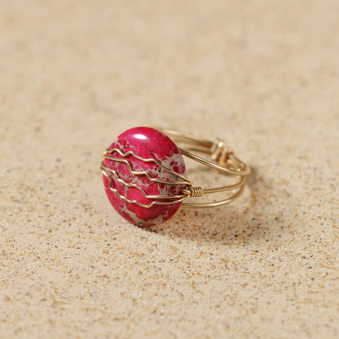 La bague Oléronaise, ornée d'une perle en jaspe impérial est sublimée par un fil gold filled doré, symbolisant protection et beauté. voir plus