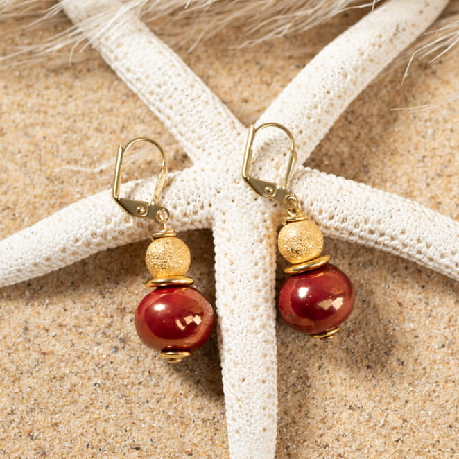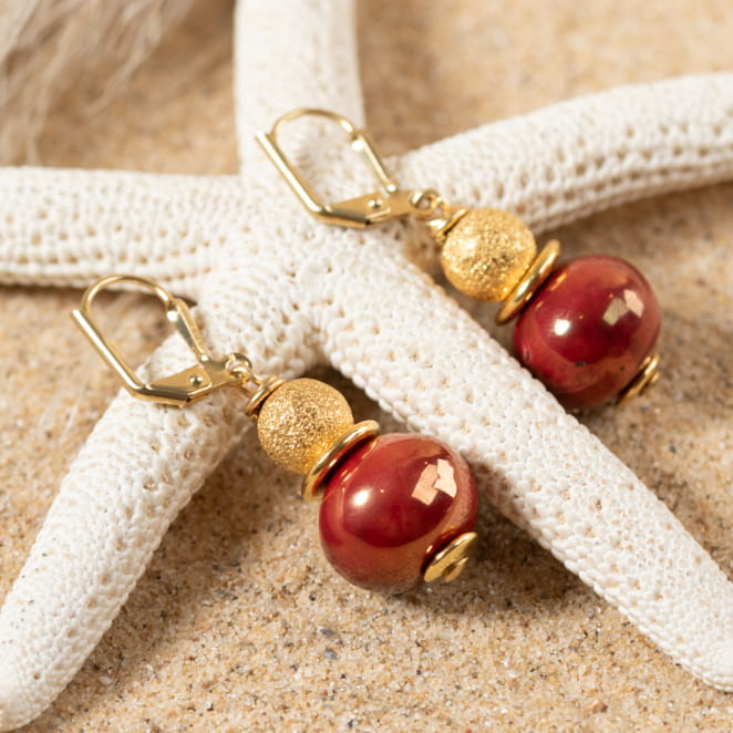 Apportez de la douceur à vos oreilles avec les boucles d'oreilles, dorées et rouge en céramique, Amour !