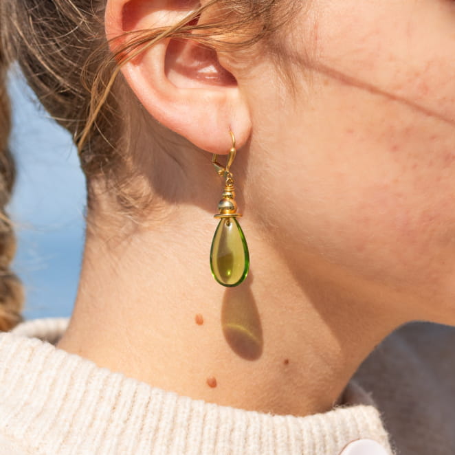 Les boucles d'oreilles Bazard sont un exemple parfait de simplicité et d'élégance. Leur design sobre et intemporel en fait l'accessoire idéal pour accompagner toutes vos tenues au quotidien. Dotées d'un pendentif en forme de goutte vert, ces boucles d'oreilles dorées ajoutent une touche d'éclat à votre style.