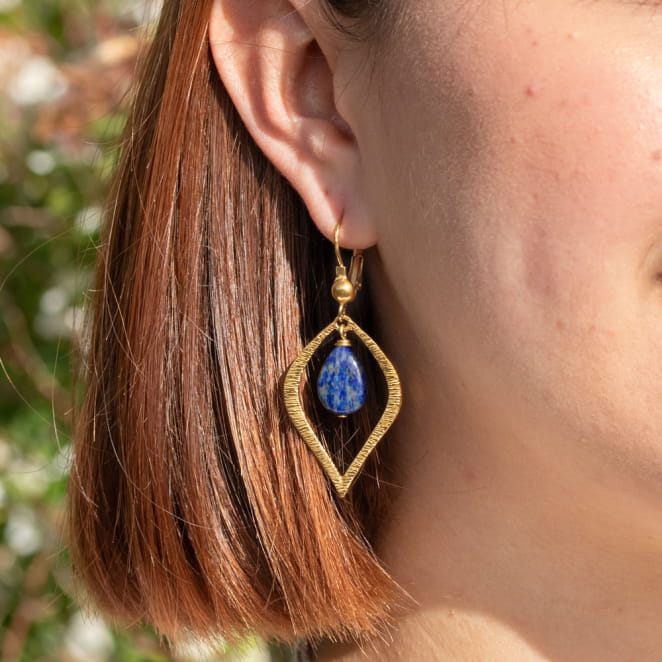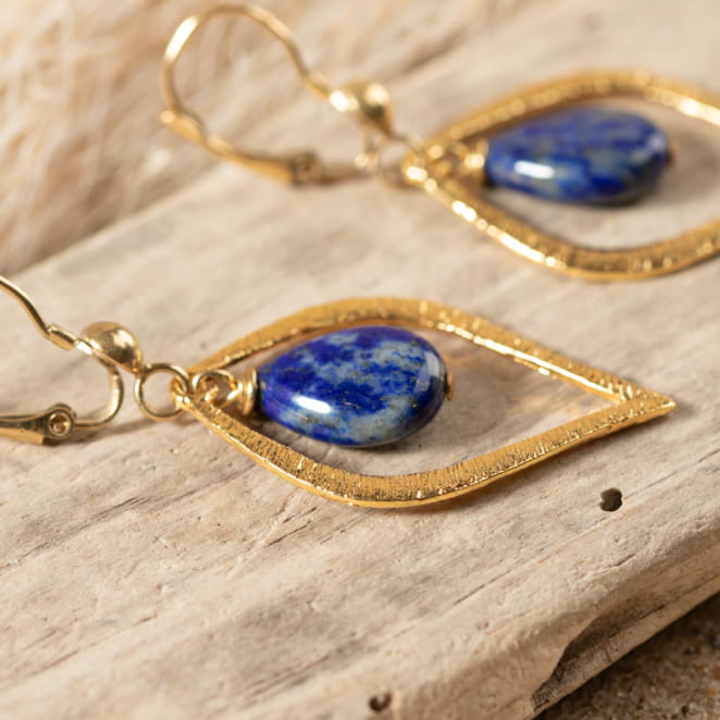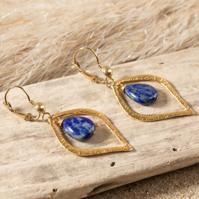 Plongez dans l'élégance avec les boucles d'oreilles Braga. Inspirées par les vagues océaniques et le soleil couchant, ces boucles d'oreilles captivent avec leur pendentif ovale doré et leurs perles bleu marine, évoquant le mystère des profondeurs marines. Démarquez-vous avec ces bijoux envoûtants !