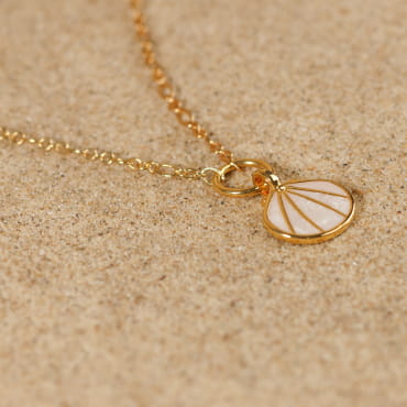 Évadez-vous avec la paire de boucles d'oreilles Caliopee. Un bijou coloré, entre coquillage et soleil d’été. Une dormeuse dorée, un petit anneau fin, et en dessous, un coquillage blanc émaillé. Un bijou léger, lumineux, qui rappelle les journées chaudes, le sable tiède et la mer tout près. Fabriqué à la main dans notre atelier sur l’île d’Oléron.
