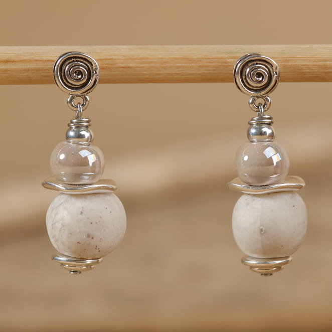 Ses perles grises en céramique se mêlent aux perles en polymère recyclé pour une allure subtile, douce et contemporaine : ce bijou apporte une touche naturelle et sophistiquée à votre look. Ses perles plates argentées quant à elles reflètent le mouvements des vagues et rappellent vos jolis souvenirs de vacances au bord de l'eau !