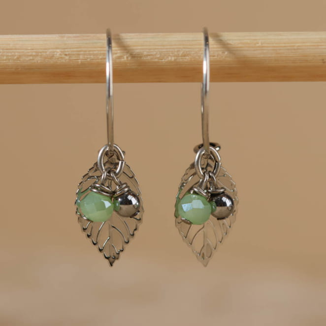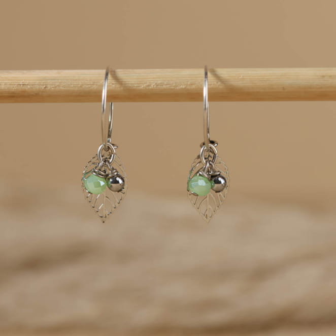Laissez briller la nature avec les boucles d'oreilles Nature pour enfant. Ornées d'un pendentif feuille argenté, ces boucles d'oreilles captivent par leur élégance simple. Accentuées par une perle en verre vert et une perle en hématite argenté, elles évoquent la beauté de l'extérieur. Parfaites pour les jeunes amoureux de la nature !