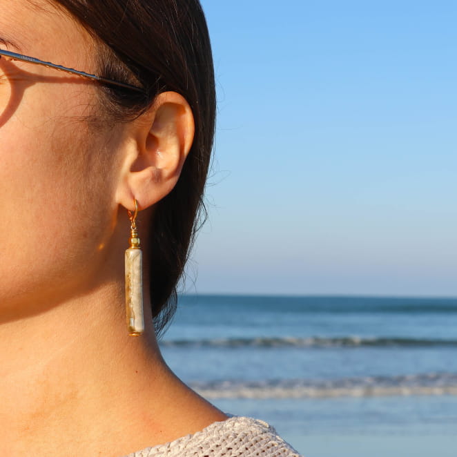 Laissez-vous porter par l’harmonie des boucles d’oreilles pour femme Kate, une alliance subtile entre douceur et modernité grâce à sa perle en céramique. Chaque pièce associe une perle dorée, lumineuse et intemporelle, à une longue perle en céramique beige, pour un contraste à la fois épuré et sophistiqué. Légères et graphiques, elles dansent avec délicatesse au gré de vos mouvements, comme une brise marine caressant les vagues. Ces boucles d’oreilles sont une invitation à l’évasion et à la féminité !
