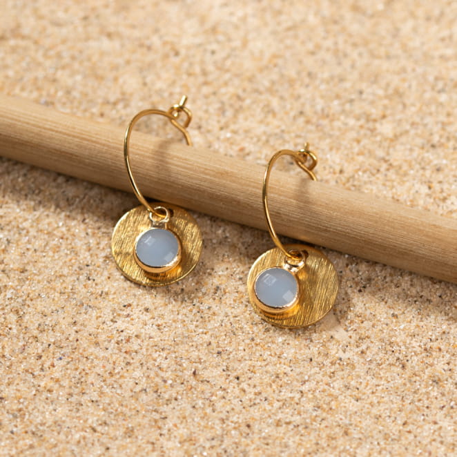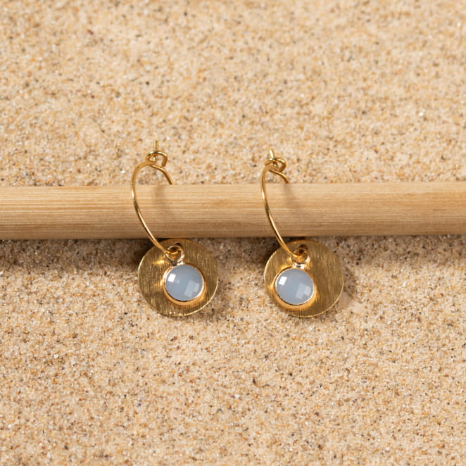 Les boucles d'oreilles Mignon incarnent la simplicité sophistiquée. Leur design doré délicat accueille un pendentif rond bleu surplombant une médaille en métal. Leur discrétion et leur élégance en font un accessoire polyvalent qui se marie parfaitement avec toutes les tenues. Ces petites touches d'élégance ajoutent une touche subtile de style à votre look, quelle que soit l'occasion.