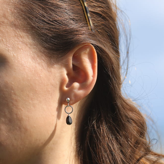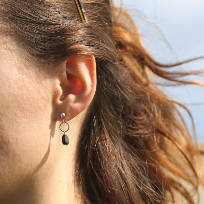 Adoptez un style raffiné avec les boucles d'oreilles Mini pour femme ! Ce bijou fantaisie se compose de pendentifs goutte en verre noir sur des cercles argentés. Discrètes et élégantes, ces petites boucles d'oreilles apportent une touche délicate à votre look quotidien.