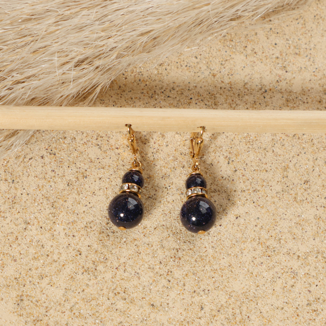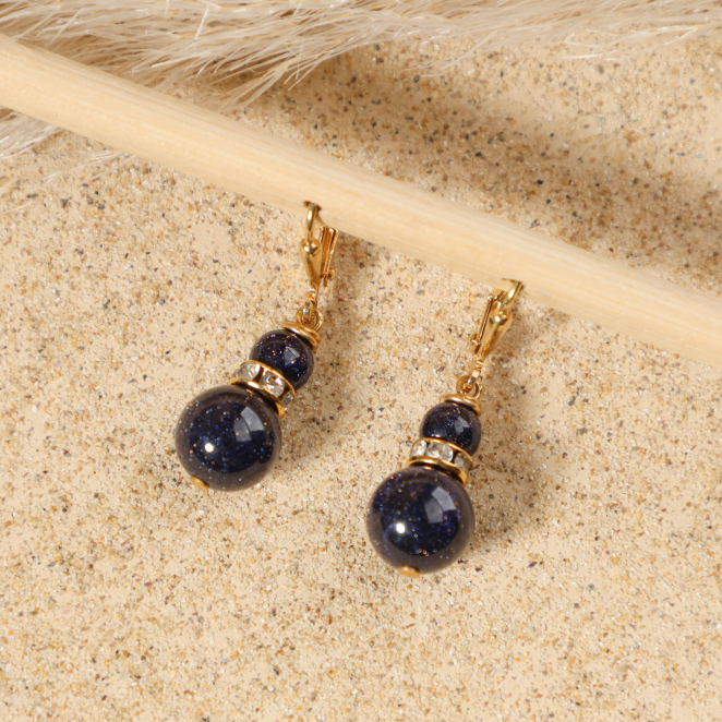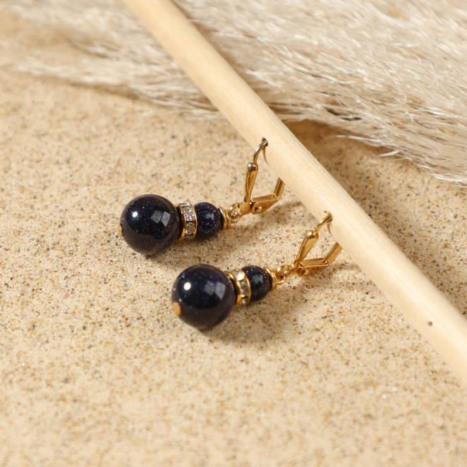 Laissez-vous porter par l’élégance des boucles d’oreilles pendantes Sarah, où les perles en pierre de sable bleu captent la lumière. Rehaussées par des perles plates en strass, elles apportent une touche douce et délicate à votre quotidien. Un bijou intemporel, idéal pour illuminer chaque instant lors de vos balades en bord de mer !