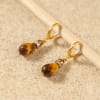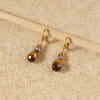 Optez pour nos boucles d'oreilles femme Witch : les perles œil-de-tigre révèlent leurs reflets dorés et chauds, sublimées par des perles en strass et une perle de verre marron profond. voir plus