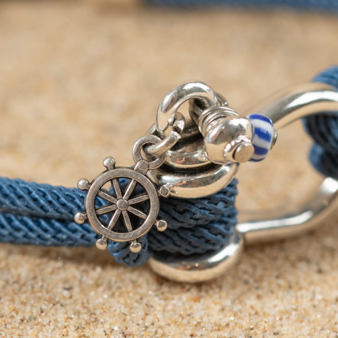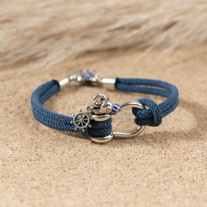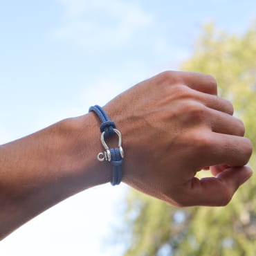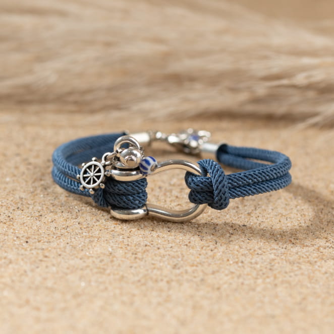 Le bracelet Cotinière, inspiré par le port portant ce même nom sur l'île d'Oléron, évoque l'ambiance du port et le charme des petits bateaux colorés ! Son pendentif manille et son double cordon en font un bracelet artisanal aux allures marines. La jolie couleur bleu gris de ce bijou fantaisie apporte une touche élégante à votre poignet.