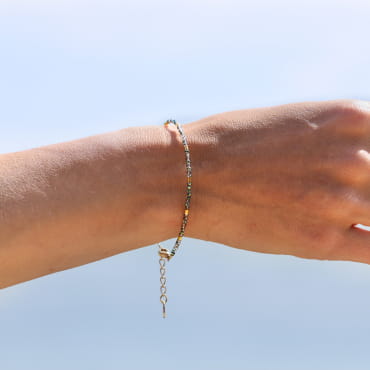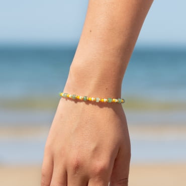 Le bracelet Élégance brille dans un vert profond, vibrant et naturel. Avec ses perles en verre vert foncé et ses touches dorées, il apporte une note chic et décontractée. Le câble souple épouse le poignet tout en discrétion. À porter seul ou en accumulation avec d’autres bijoux pour une allure estivale. Une pièce à porter au quotidien, ou à faire scintiller en superposition !