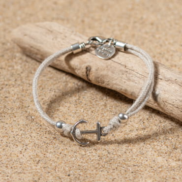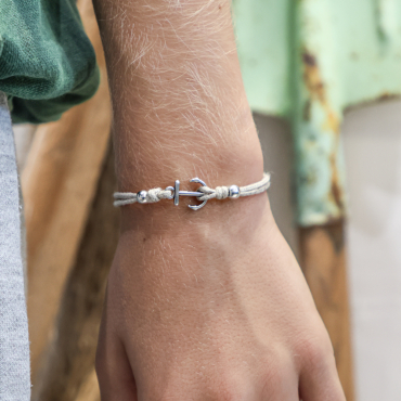 Embarquez pour une belle aventure marine avec le bracelet Vati ! Spécialement imaginé pour les petits poignets, ce bijou arbore un gouvernail argenté, suspendu à un cordon kaki, pour voguer vers de beaux horizons !