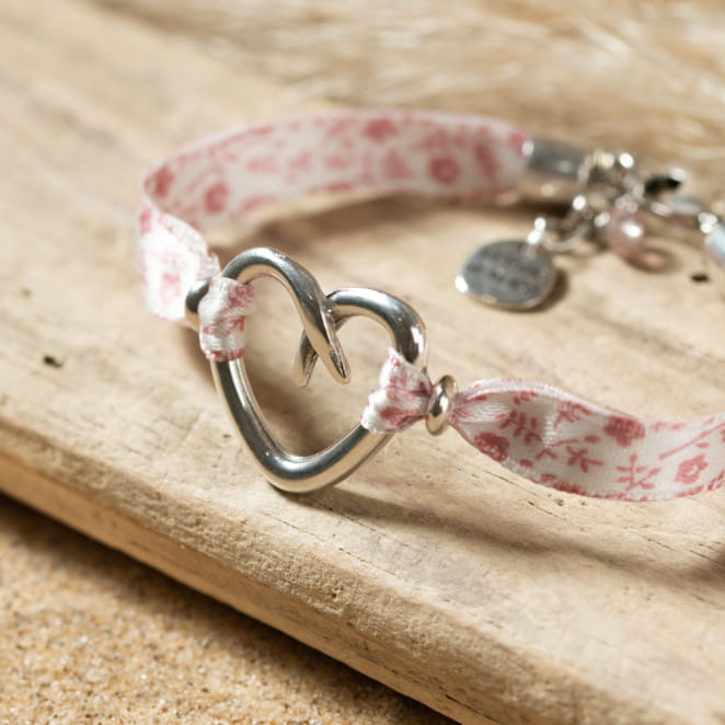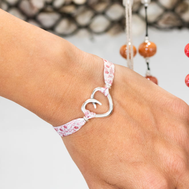 Créé avec amour, ce bijou incontournable a été décliné dans une version plus romantique. Il est composé d’un pendentif en forme de cœur argenté et d’un ruban en satin à imprimé liberty. Doux et floral, il capture l’instant des beaux jours à venir !
