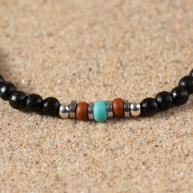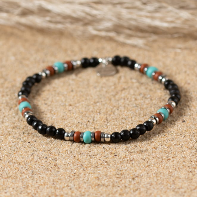 Distinguez-vous avec le bracelet homme Jay. Combinant des matériaux naturels tels que le bois, l'hématite et le verre, il offre une esthétique unique. Les perles variées mettent en valeur votre poignet avec élégance et subtilité.