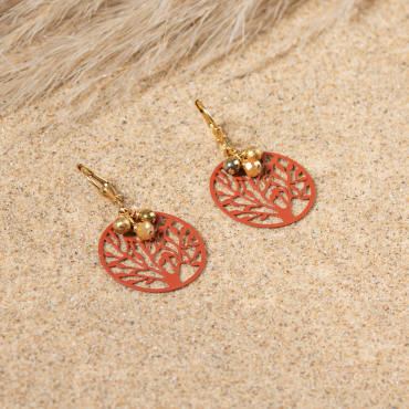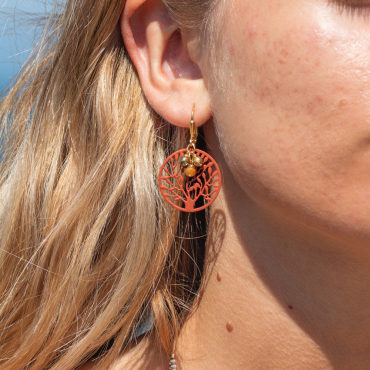 • Bracelet Laure doré à l’or fin et perles terracotta, bijou fait main en France.