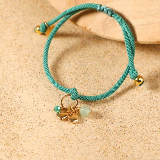 Le bracelet Mama vert bouteille est une création douce et symbolique, à offrir à une personne chère ou à s’offrir pour garder près de soi un message d’amour discret et précieux. Avec ses pendentifs en forme de cœur à composer sur-mesure, ce bracelet personnalisé devient un véritable bijou émotion qui a du sens. Choisissez de 1 à 4 pendentifs cœur pour créer un bijou unique, à votre image. Chaque cœur représente une pensée, un lien, une personne. Ce bijou fait main est le cadeau idéal. Un bracelet porte-bonheur à offrir avec le coeur !