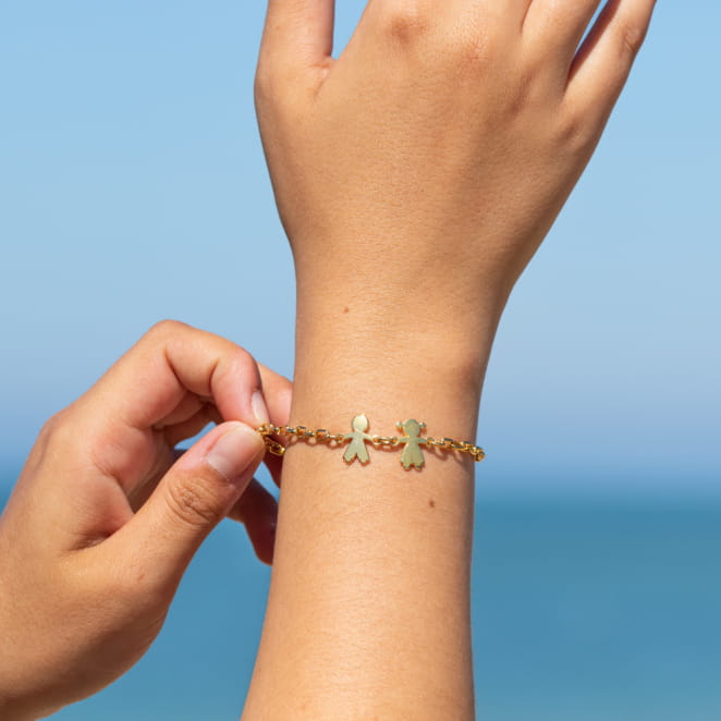Le bracelet Marius est un bracelet porte-bonheur tout en sobriété et en tendresse. Il se personnalise en choisissant les pendentifs représentant vos enfants ou petits-enfants, pour un bracelet porte-bonheur aussi discret que symbolique ! Une belle attention à offrir ou à s’offrir, à l’occasion d’un moment spécial ou simplement pour le plaisir. Un cadeau idéal !