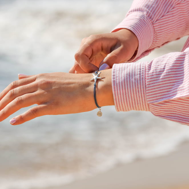 Le bracelet Moliets, est un bracelet fin orné d'une étoile de mer argenté. voir plus