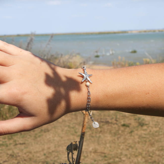 Le bracelet Moliets, est un bracelet fin orné d'une étoile de mer argenté. voir plus
