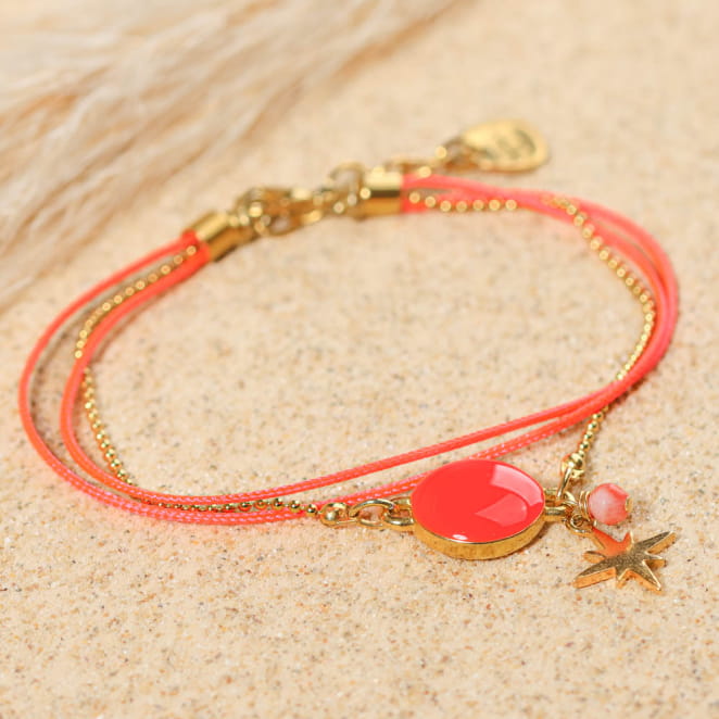 Ce bracelet Ouest est d'une élégance incroyable. L'alliance de sa couleur dynamique et joyeuse rose accordée à la délicatesse du métal doré en fait un bijou lumineux et raffiné. Une touche de couleur parfaite pour accompagner tous vos looks !