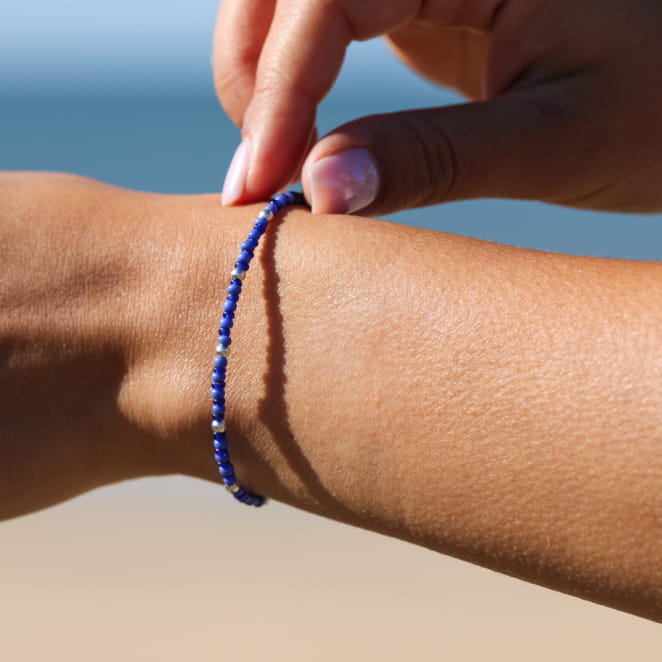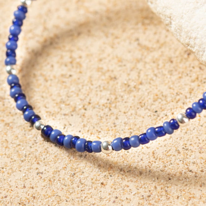 Laissez-vous emporter par l'esprit marin avec le bracelet Poggio, en perles argentées et en perles aux différents tons de bleus. voir plus
