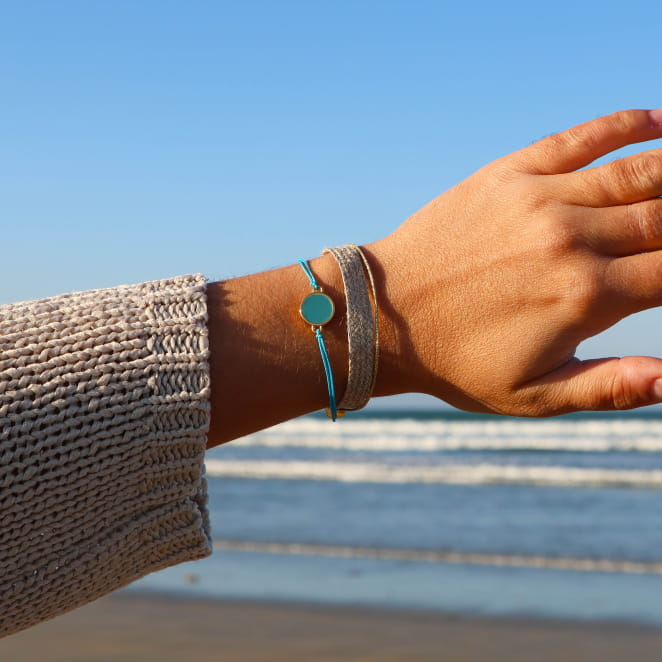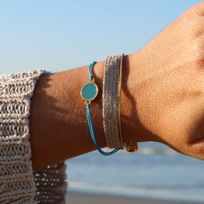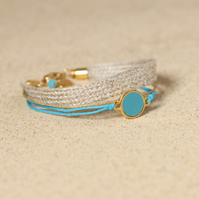 Associez le bracelet multirang pour femme Valeria avec toutes vos tenues de bord de mer. Ce bracelet est un idéal pour donner charme et couleur à votre look, ces différents cordons naturels liés à de l'émaillé bleu apportent modernité et tendance ! Un bijou unique qui évoque le bleu de l'océan avec les reflets du soleil, ces multirangs habillent et donnent originalité à votre poignet.