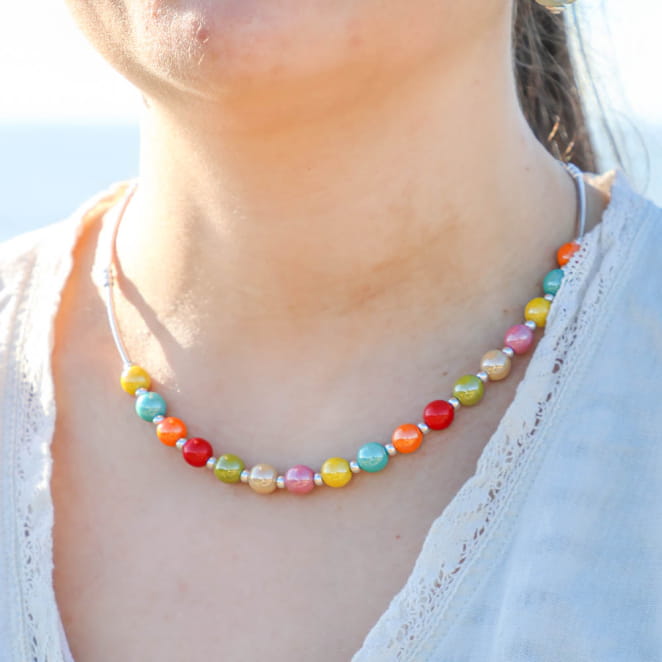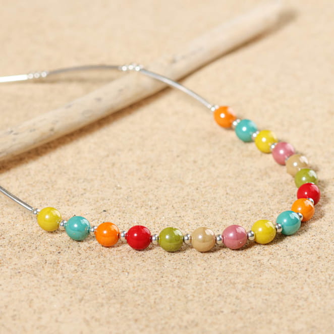 Découvrez le collier Aurélie, une pièce éclatante et colorée pour femme. Ce collier se compose de perles multicolores et de perles argentées, offrant une touche de gaieté et d'élégance à vos tenues. Parfait pour égayer votre look, le collier Aurélie est un accessoire tendance et lumineux, idéal pour toutes les occasions.