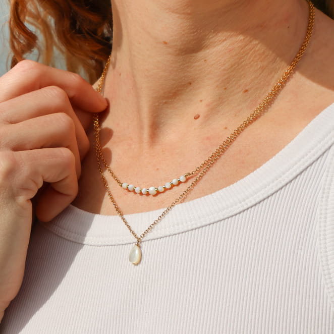 Le collier Estelle est le bijou parfait à porter au quotidien. Un indémodable qui s'accorde facilement avec tous vos looks grâce à ses nuances doré et blanche. Élégant et discret, ce collier double rang est le bijou à voir dans votre sélection.