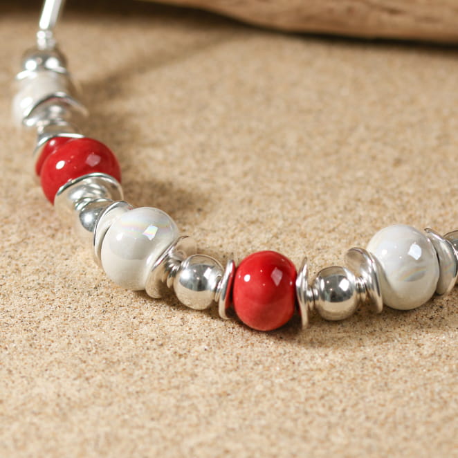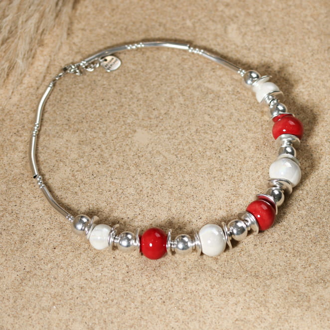 Le collier Patel, avec ses perles en céramique blanche immaculée et rouge vif, ajoute luminosité et couleur à toutes vos tenues. La céramique apporte une touche naturelle, tandis que le métal argenté ajoute éclat et sophistication. Idéal pour illuminer votre teint et compléter votre look avec une élégance moderne.