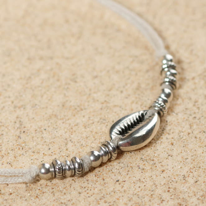 - d'un pendentif en métal plaqué argent 999 en forme de cauri,