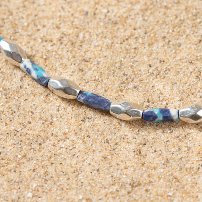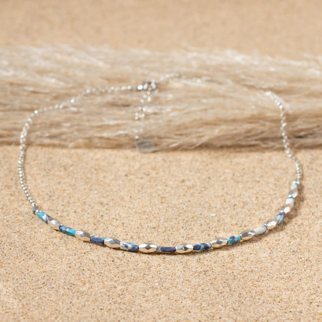 Évadez-vous avec ce collier Trikala et ses délicates pierres aux différentes nuances de bleu et de violet. voir plus