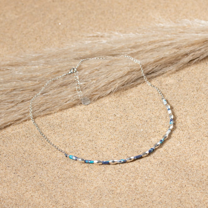 Évadez-vous avec ce collier Trikala et ses délicates pierres aux différentes nuances de bleu et de violet. Un bijou fin et délicat qui épouse parfaitement la forme de votre cou et s'accorde facilement avec tous vos looks tout en apportant une touche de couleurs discrète.