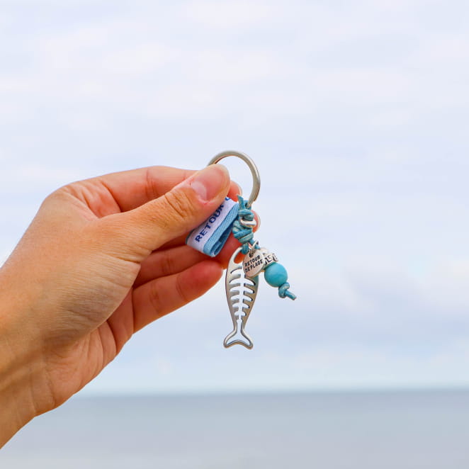 Élégant et discret, ce porte-clefs Ichty vous aidera à ne plus perdre vos clés. Son petit format vous permet de ranger facilement votre trousseau dans vos poches comme dans votre sac. Un accessoire artisanal qui sera vous rappelez l'eau turquoise de vos vacances au bord de la côte Ouest.