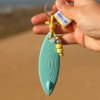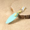 - d'un pendentif en forme de planche de surf en polymère bio sourcé* bleu.