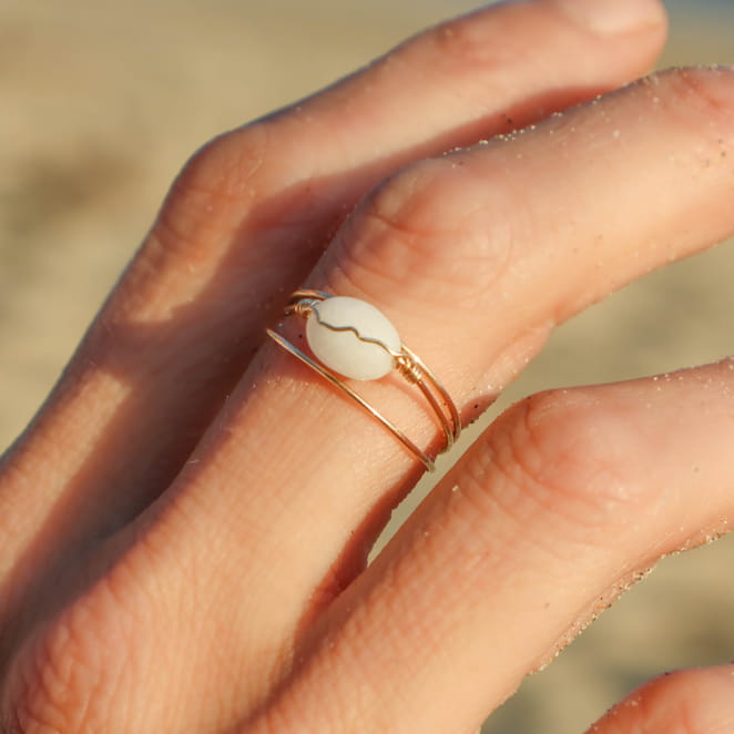 La bague Arcachonnaise, ornée d'une perle en aragonite blanche est sublimée par un fil de gold filled doré. Élégante et raffinée, elle est parfaite pour toutes les occasions, apportant une touche de sophistication à votre tenue. L'association du doré lumineux et de la pierre en aragonite blanche, symbole de patience et de tolérance, confère à cette bague un charme classique et moderne à la fois. Fabriquée avec soin, elle incarne l'essence de la simplicité chic, célébrant le mariage harmonieux des matériaux de qualité et du savoir-faire artisanal. Un véritable trésor à porter au quotidien !
