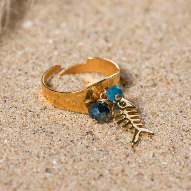 La bague Arête est une bague originale et sophistiquée. Sa breloque en forme d'arête de poisson et ses petites perles en verre en font une bague amusante ! Elle deviendra votre meilleure amie.