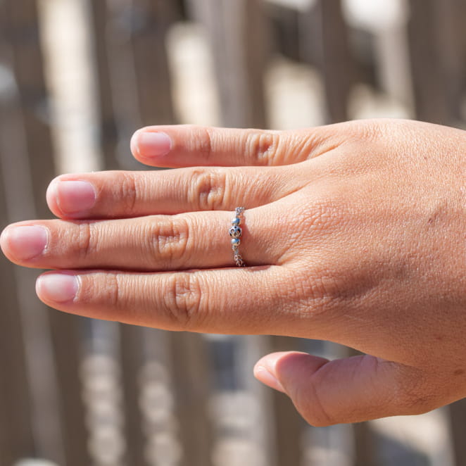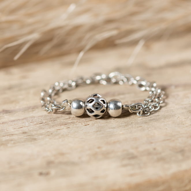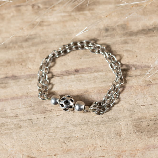 Laissez-vous séduire par notre bague Campos ! Osez une touche d'originalité tout en délicatesse avec sa fine double chaîne argenté. Raffinée et discrète, elle sera facile à associer pour un look tendance et chic !