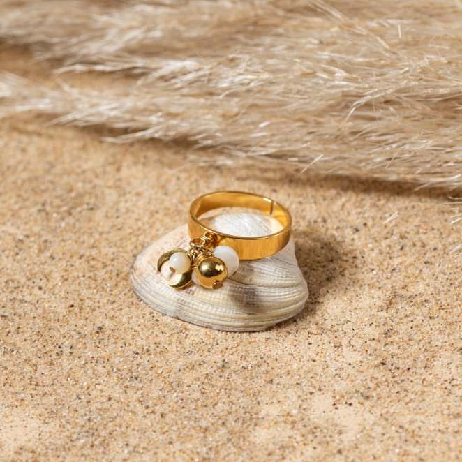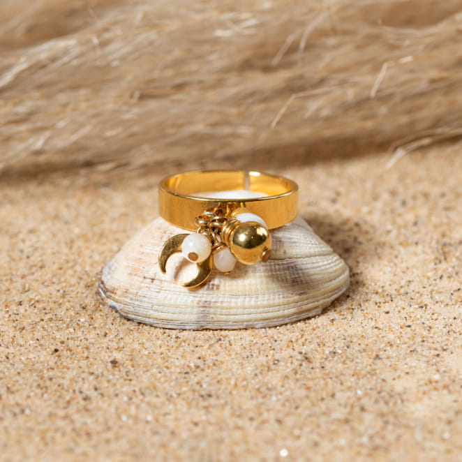 Hedda est le mélange parfait entre modernité et douceur. Sa lune dorée et ses petites perles se balanceront délicatement à vos doigts.